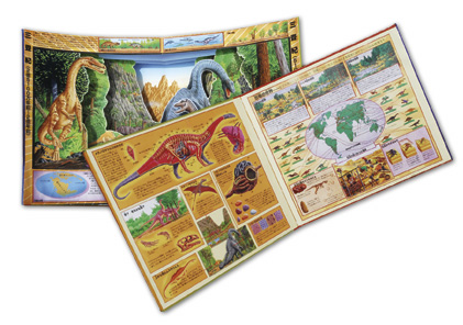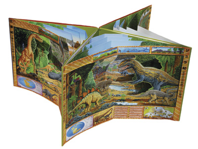 ●本なのに、長くなる。大パノラマで三畳紀、ジュラ紀、白亜紀の3つ恐竜時代が一望できる。