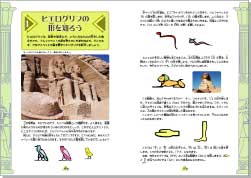 マウスを下のヒエログリフにのせてみると、読み方がわかるよ。